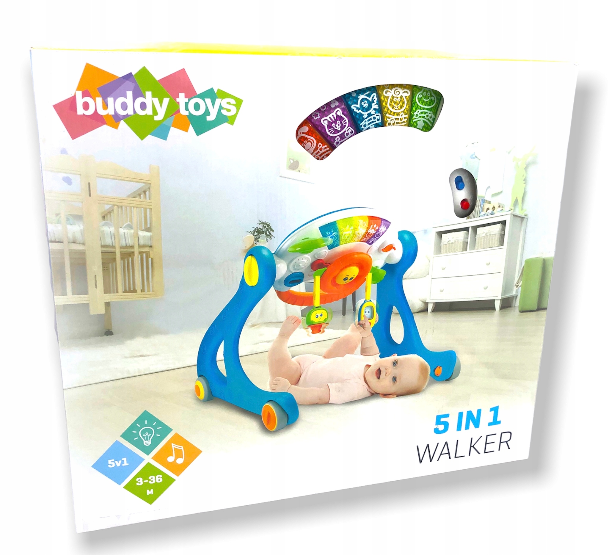 Ходунки 5 в 1 від Buddy Toys – це практична іграшка для малюків із дуже різноманітним застосуванням, яка буде супроводжувати дитину у багатьох стадії розвитку. Це допомагає дітям робити перші кроки, а знімна панель ідеально підходить для подорожей на автомобілі, забезпечуючи вашому малюку розвагу.