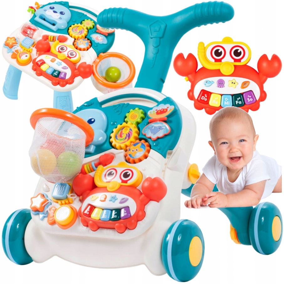 Навчальні ходунки-штовхани — це не лише ідеальний супутник під час перших кроків. Це також чудовий ігровий центр. Тут ви знайдете як постійні елементи, так і ті, які можна видалити та використовувати для самостійної гри.