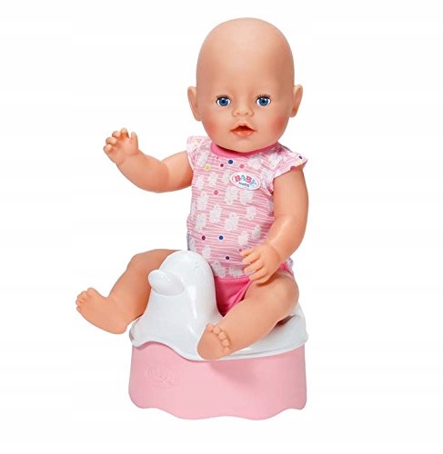Рожевий горщик має білу кришку у формі качечки, яку можна зняти та спорожнити, коли Бебі Борн пісяє. Потім ляльку винагородять оплесками. Контурна спинка та голова качки в передній частині чохла дозволяють Baby Born зручно сидіти, і він точно не впаде під час використання горщика.