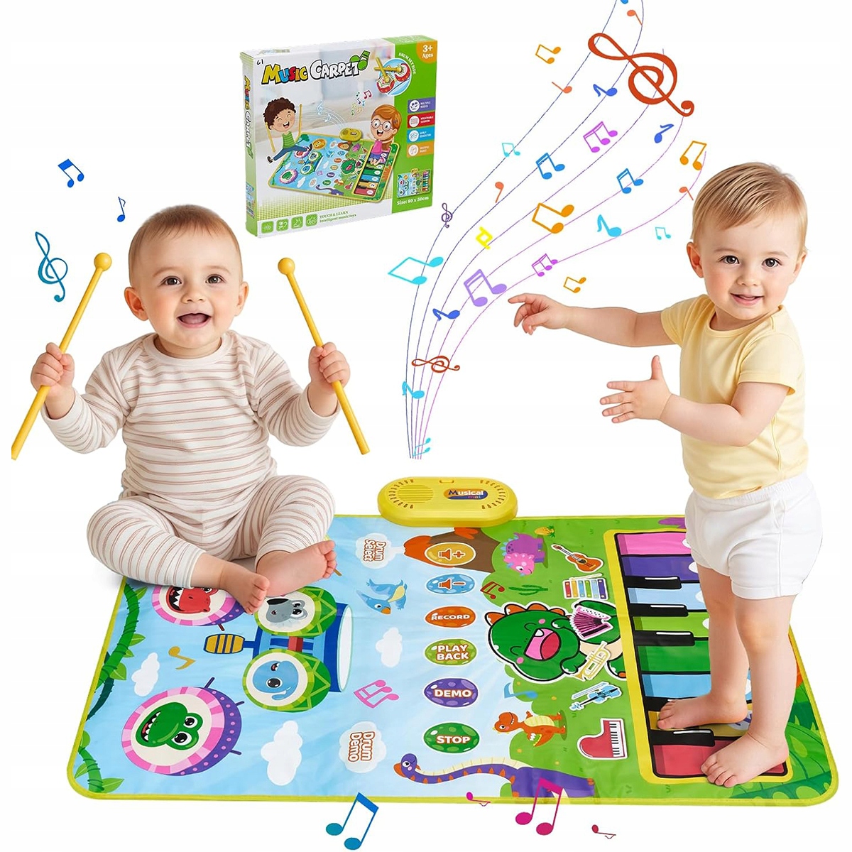 Наш музичний килимок є ідеальним подарунком для дітей віком від 1 року. Діти можуть досліджувати музику самостійно або з друзями та родиною, заохочуючи взаємодію та зміцнюючи впевненість. Цей музичний килимок 2 в 1 ідеально підходить як подарунок на день народження, Різдво, День захисту дітей тощо.