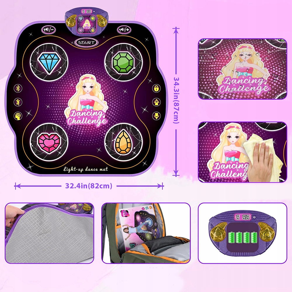 Дитячий танцювальний килимок має м’яку поверхню, нековзкі силіконові частинки на дні та виготовлений з високоякісного вінілу, який не токсичний і не має запаху.