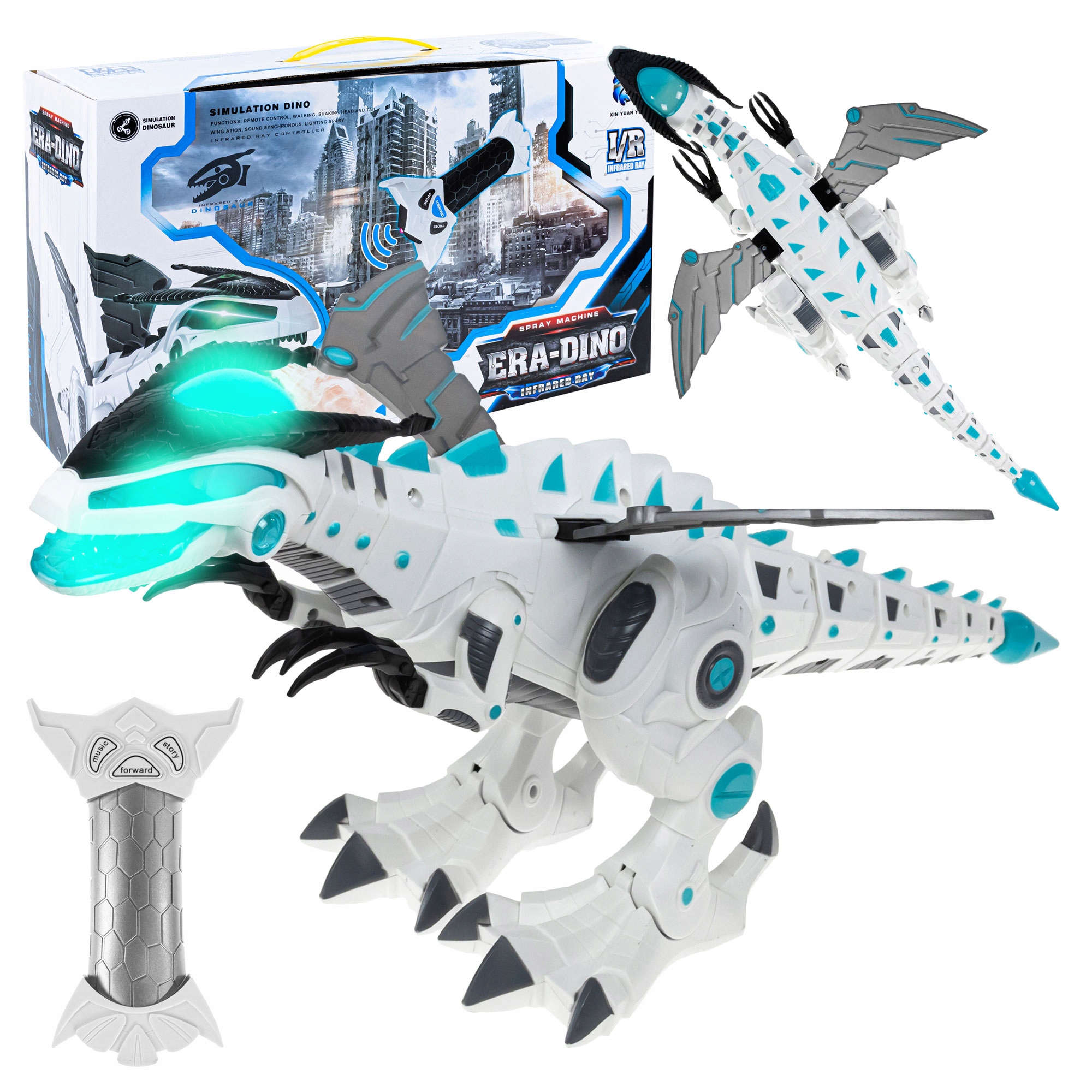 Іграшка також має звукові ефекти , такі як кумедна історія та життєрадісні мелодії. Ефекти вмикаються за допомогою пульта дистанційного керування. Динозавр не має польського.