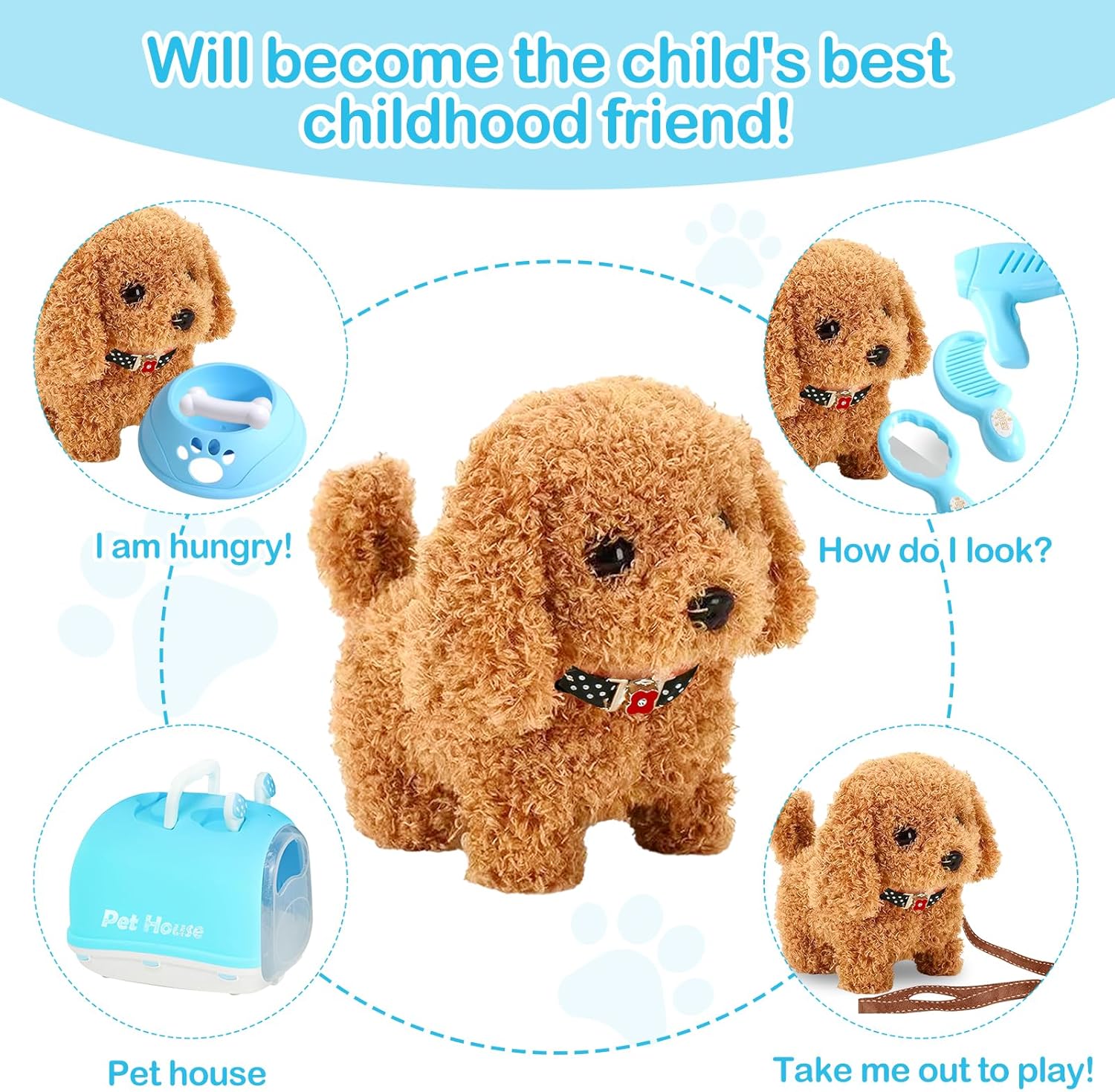 Після встановлення батарей собака гавкає, бігає та весело виляє хвостом, реагуючи на жести та дотики дітей. Це надзвичайно захоплююча іграшка, яка розвиває емпатію, уяву та навички турботи 👧🧒💗