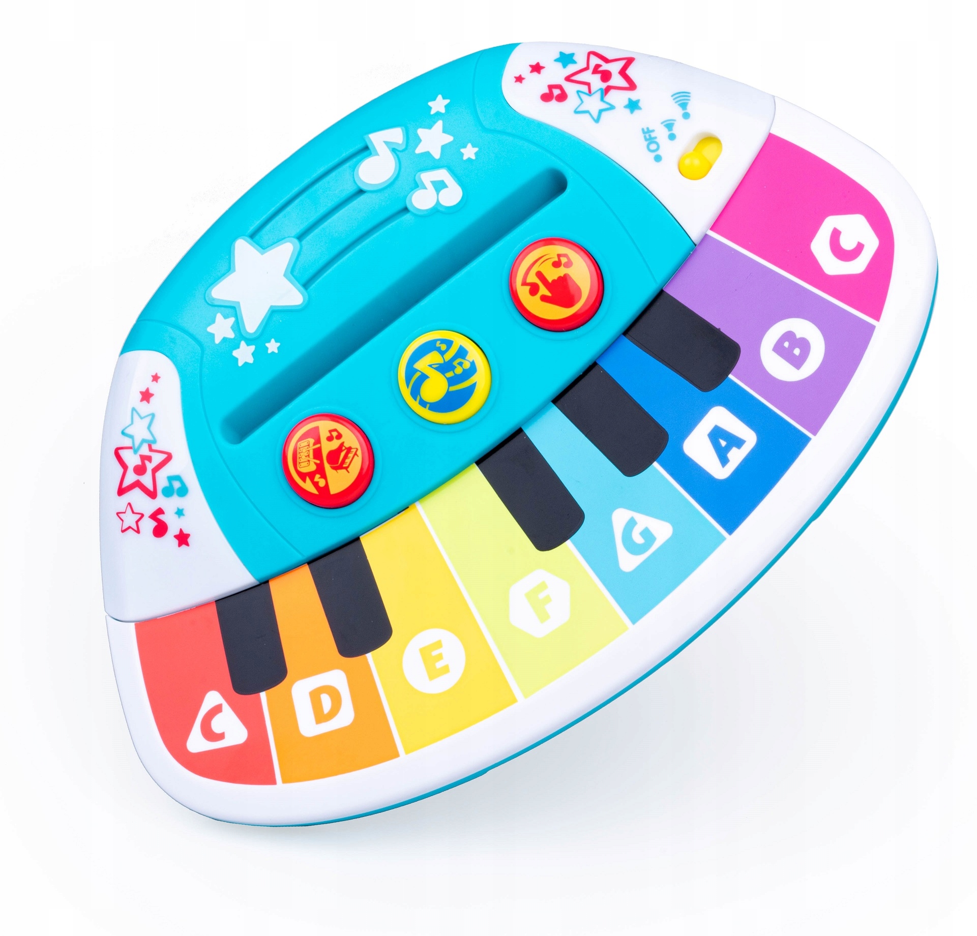 Гра на фортепіано, викладає та розважає польською мовою! 4 Кожен із барвистих клавіш відповідає різному діапазону діапазону, і картки, прикріплені до набору за допомогою музичного позначення, дозволять вам грати стільки, скільки 12 популярних мелодій . Фортепіано має 3 режими: