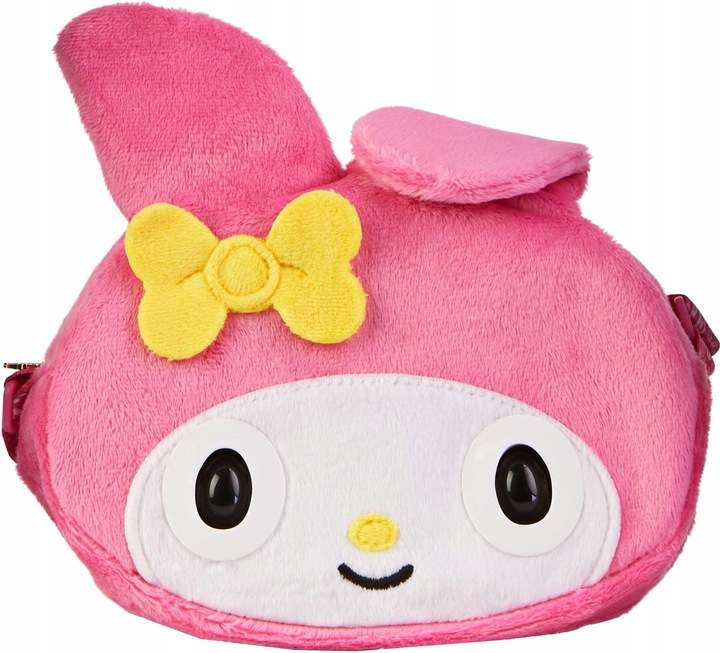 Ця чарівна маленька пухнаста сумка рожевого кольору. Він має надзвичайно м’який плюшевий матеріал і великі очі, натхненні Hello Kitty. Також у неї короткі вушка і червоний бант.