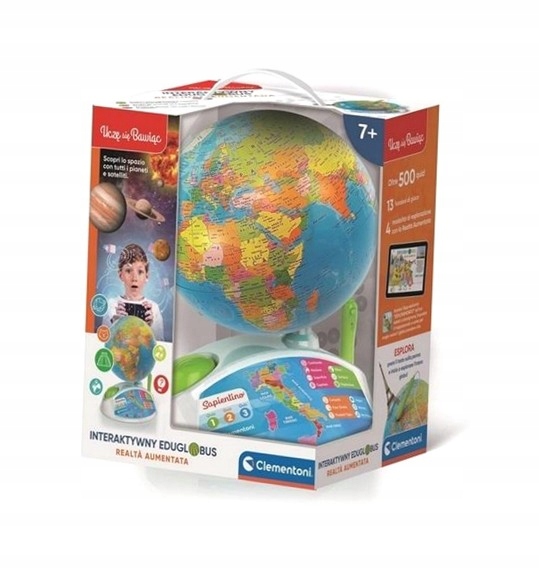 Інтерактивний глобус для відкриття краси світу. Щоб розпочати подорож, дитині потрібно буде навести ручку на карту світу, щоб дізнатися всю інформацію про вибране місце. Понад 500 запитань, розділених на три рівні складності, щоб перевірити набуті концепції та кинути виклик друзям і батькам. Години інформації та 13 ігрових функцій для нескінченного задоволення! Глобус містить інформацію про континенти, нації, столиці, площу, населення, валюти, мову, територію, часові пояси, цікаві факти, типові продукти, національні гімни, клімат, історію. З додатком Explore the World веселощі продовжуються! Ви можете відчути доповнену реальність, обрамивши глобус, і він оживе! Програма сумісна з Android і Apple.