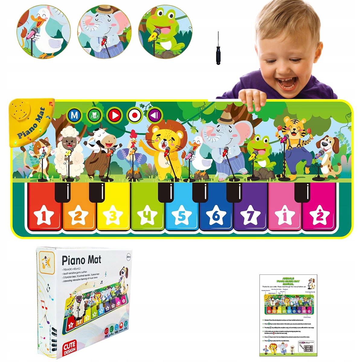 Іграшки для однорічних дітей, музичний килимок, іграшки для однорічних дітей, подарунок для однорічних хлопчиків і дівчаток, різдвяні подарунки для хлопчиків і дівчаток, шкільні подарунки, килимок для піаніно, килимки для танців, 110 х 43 см (тварини)