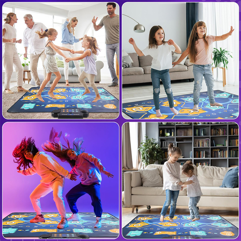Сімейні розваги для людей різного віку! Цей електронний килимок для танцю ідеально підходить для дітей старше 3 років та дорослих, і завдяки високій здатності до навантаження він витримає дорослих! Танцюйте разом, спілкуйтеся та будьте активними як сім'я.