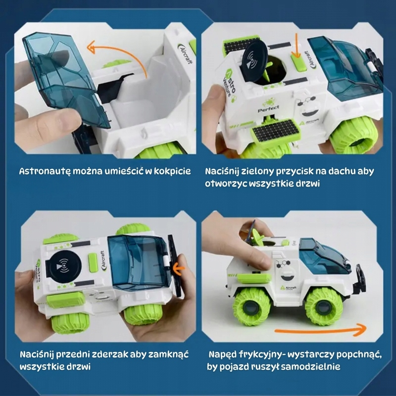 - Відкрийте для себе космічну пригоду з Space Rover від Woopie! Цей інноваційний транспортний засіб із фігуркою космонавта відправить вас у захоплюючу подорож на чужі планети. Завдяки інтерактивному радару на даху, кабіні, що відкривається, і фрикційному приводу ваш малюк зможе побувати в ролі дослідника космосу. Протиковзкі гумові шини забезпечують стабільну їзду по різних поверхнях, а якісний ABS-пластик гарантує довговічність іграшки. У набір входить космічний корабель, фігурка космонавта і барвиста упаковка, яка ідеально підходить для подарунка. Ця іграшка розвиває уяву, координацію рук і очей і інтерес до науки і техніки. Почніть свою космічну пригоду сьогодні!