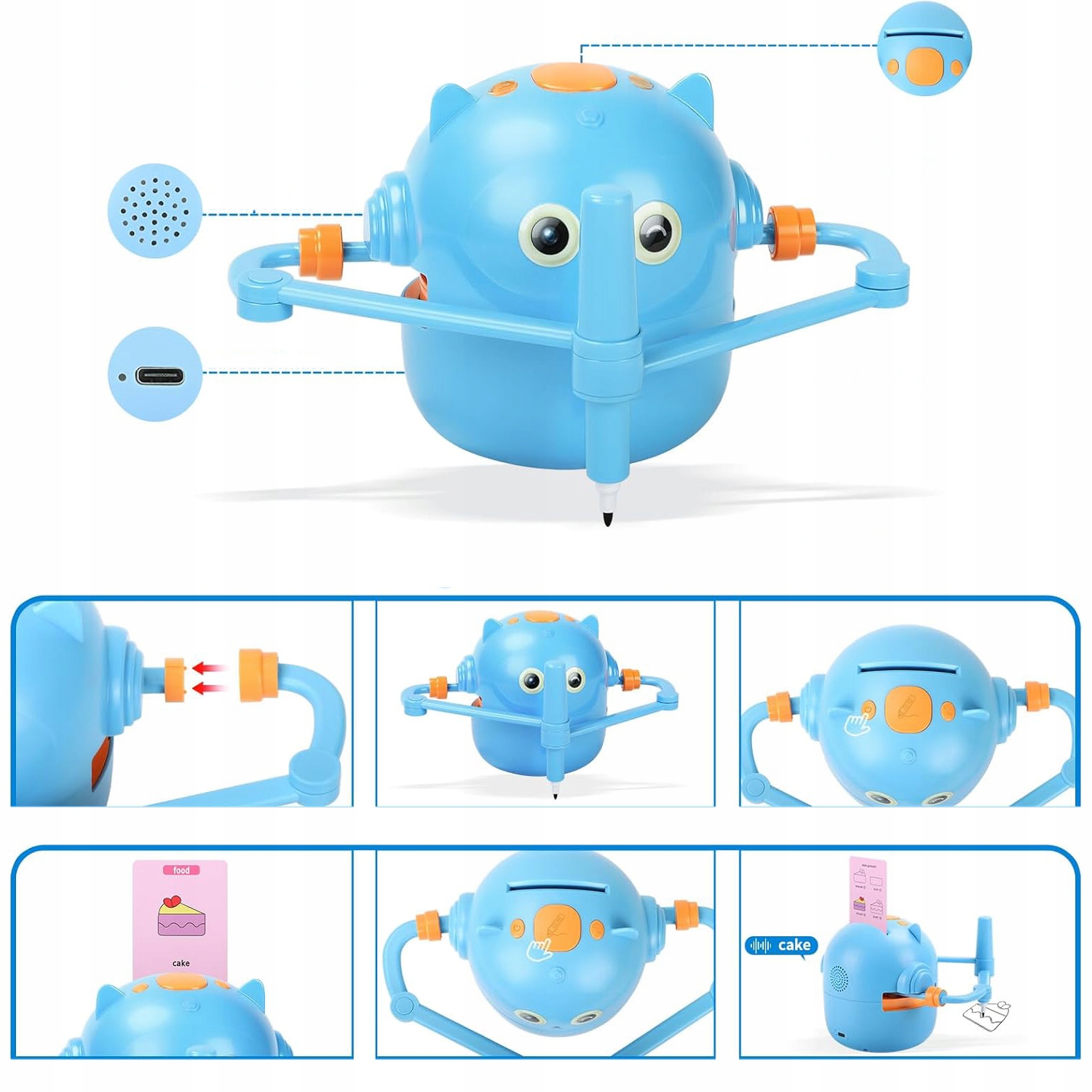 🎄🎄 РОБОТ ДЛЯ МАЛЮВАННЯ ДЛЯ ДІТЕЙ, РОБОТ ДЛЯ МАЛЮВАННЯ ДЛЯ ДІТЕЙ З РУЧКОЮ ТА 100 КАРТКАМИ, РОБОТ ДЛЯ МАЛЮВАННЯ ДЛЯ СТАРШОЇ ШКІЛЬНОЇ ОСВІТИ, ІНТЕРАКТИВНА ІГРАШКА ДЛЯ ВИВЧЕННЯ ІНОЗЕМНИХ МОВ ДЛЯ ХЛОПЧИКІВ ТА ДІВЧАТОК ВІД 3 РОКІВ+ (СИНІЙ)🎄🎄