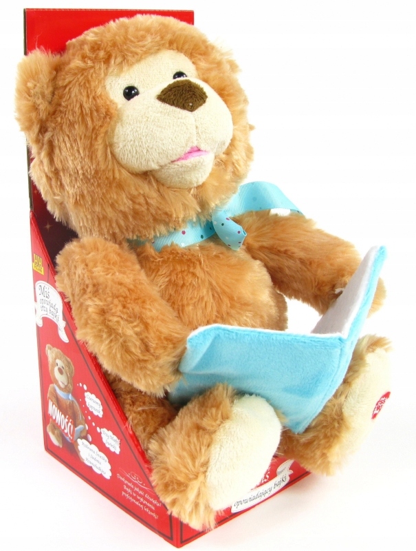 Ведмедик, рухаючи головою і ротом, приємним голосом розповідає 3 казки: