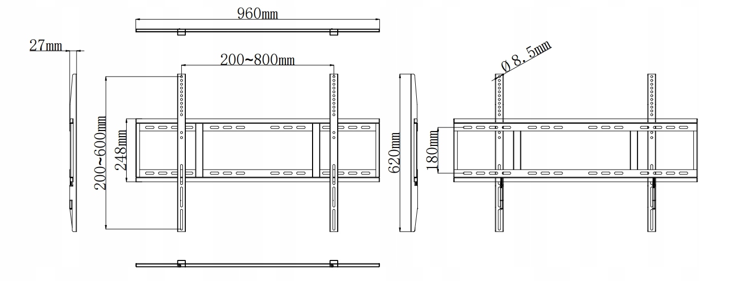 - Відстань між монтажними отворами: 400x400,