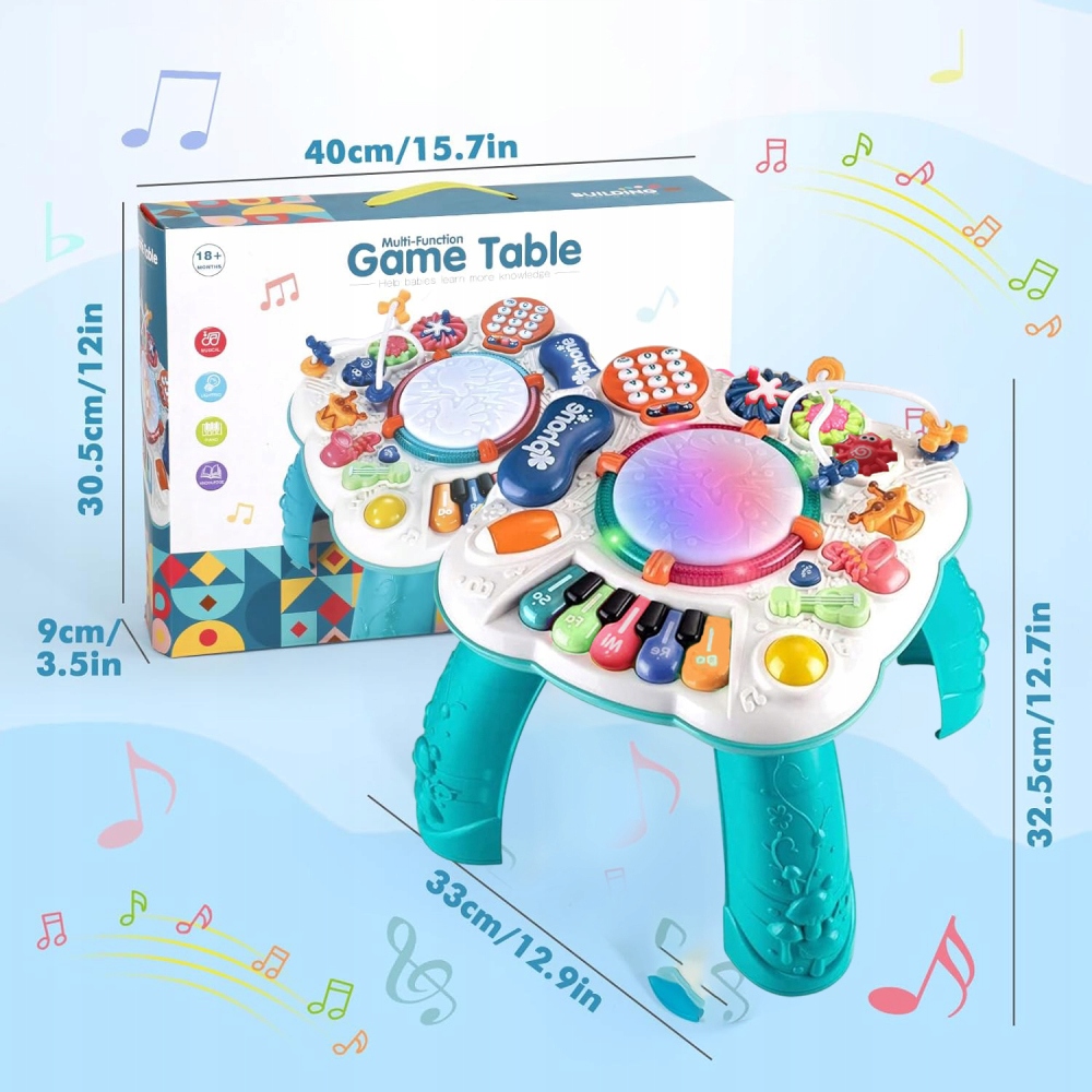 🧁Іграшка для дітей віком від 1 року: Це інтерактивний і веселий, багатофункціональний ігровий столик для дітей віком від 1 року. Ідеально підходить як інтерактивний інструмент для занять батьків і дітей. Батьки можуть навчити своїх дітей цифрам, буквам і назвам музичних інструментів і виховати у дітей розуміння та інтерес до музичних інструментів. Ви також можете весело провести час сім'єю. Підходить як іграшка для дітей від 1 до 23 років.