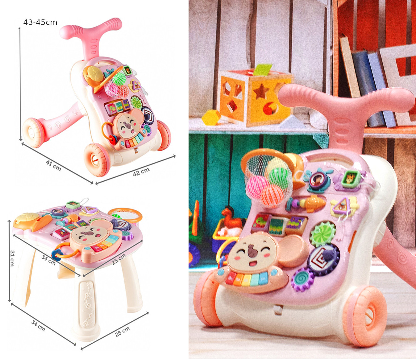 ➡️ Розвиваючий столик стане в нагоді, коли дитина занадто маленька, щоб вчитися ходити або їй нудно ходити, ми можемо швидко перетворити штовхач на навчальний стіл!