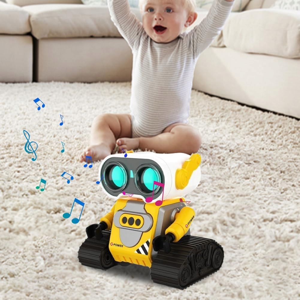 Коли ви вмикаєте робота, його смішні великі очі світяться, завдяки чому він виглядає ще симпатичніше вночі. Цей робот може співати різні пісні за допомогою музичної кнопки. У демонстраційному режимі він буде обертатися на 360 градусів і танцювати на своїх гнучких руках. Він також має різнокольорові, автоматично змінювані вогники в очах, що робить його неймовірно милим.