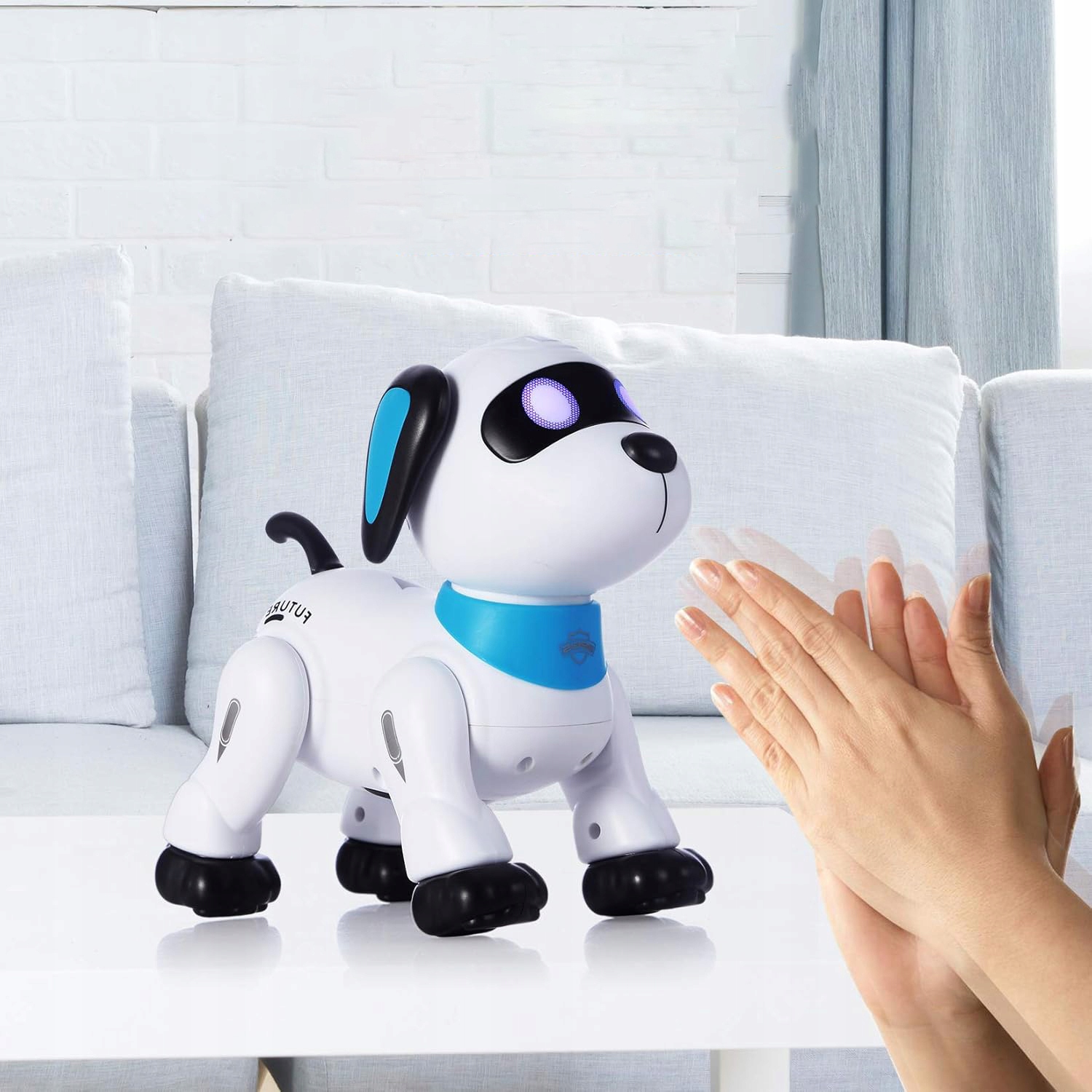 - Вбудований датчик голосу реагує на плескання в долоні – собака співає та танцює!