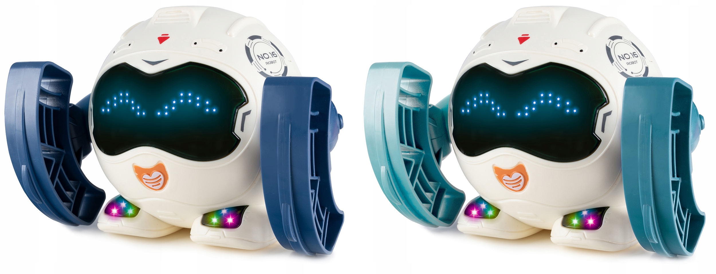 Робот рухає руками, обертається на 360° і котиться. Індикатори ніжок світяться різними кольорами.