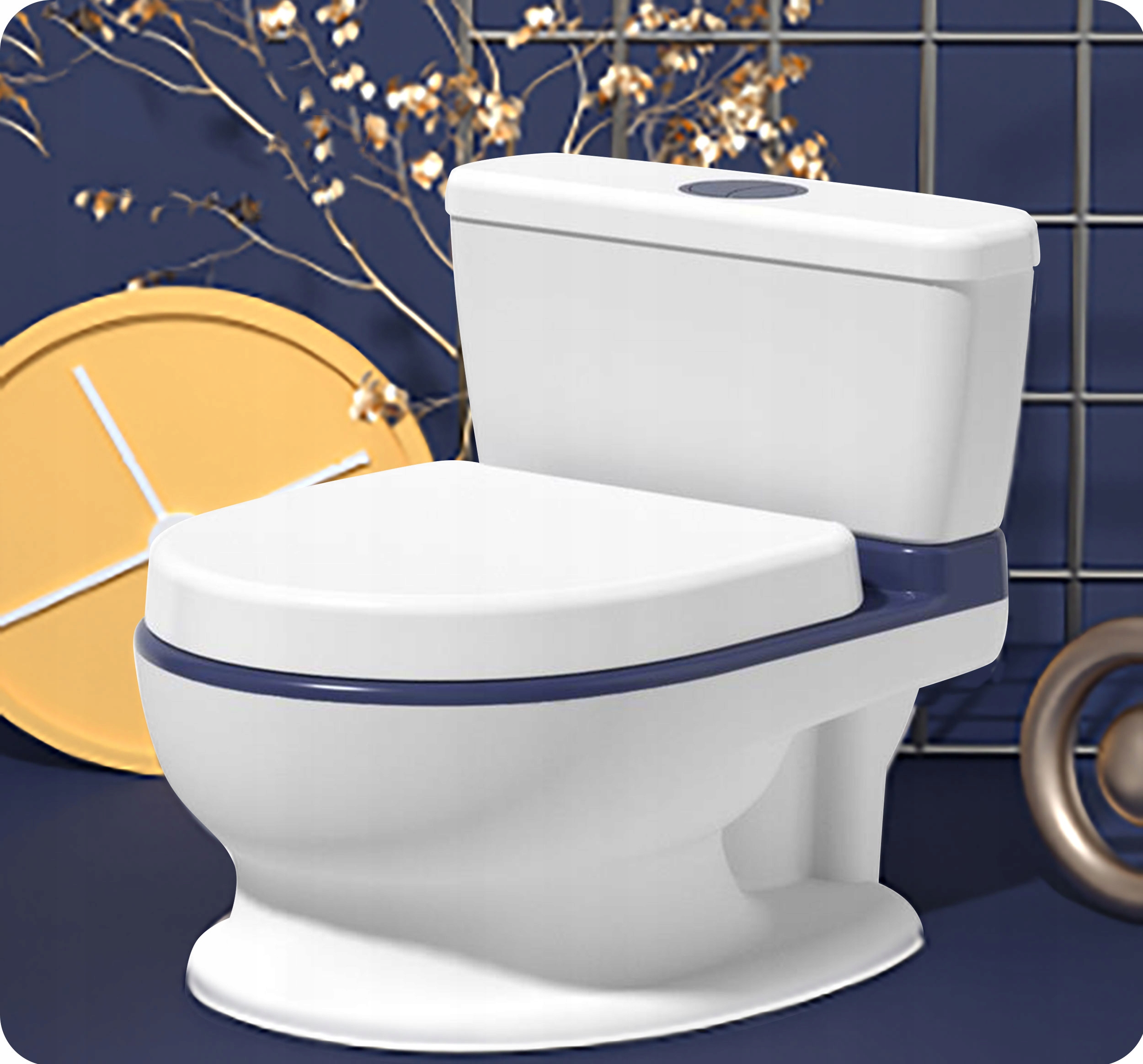 У горщика є мелодії, які дитина може активувати після натискання кнопки, що імітує змивання.