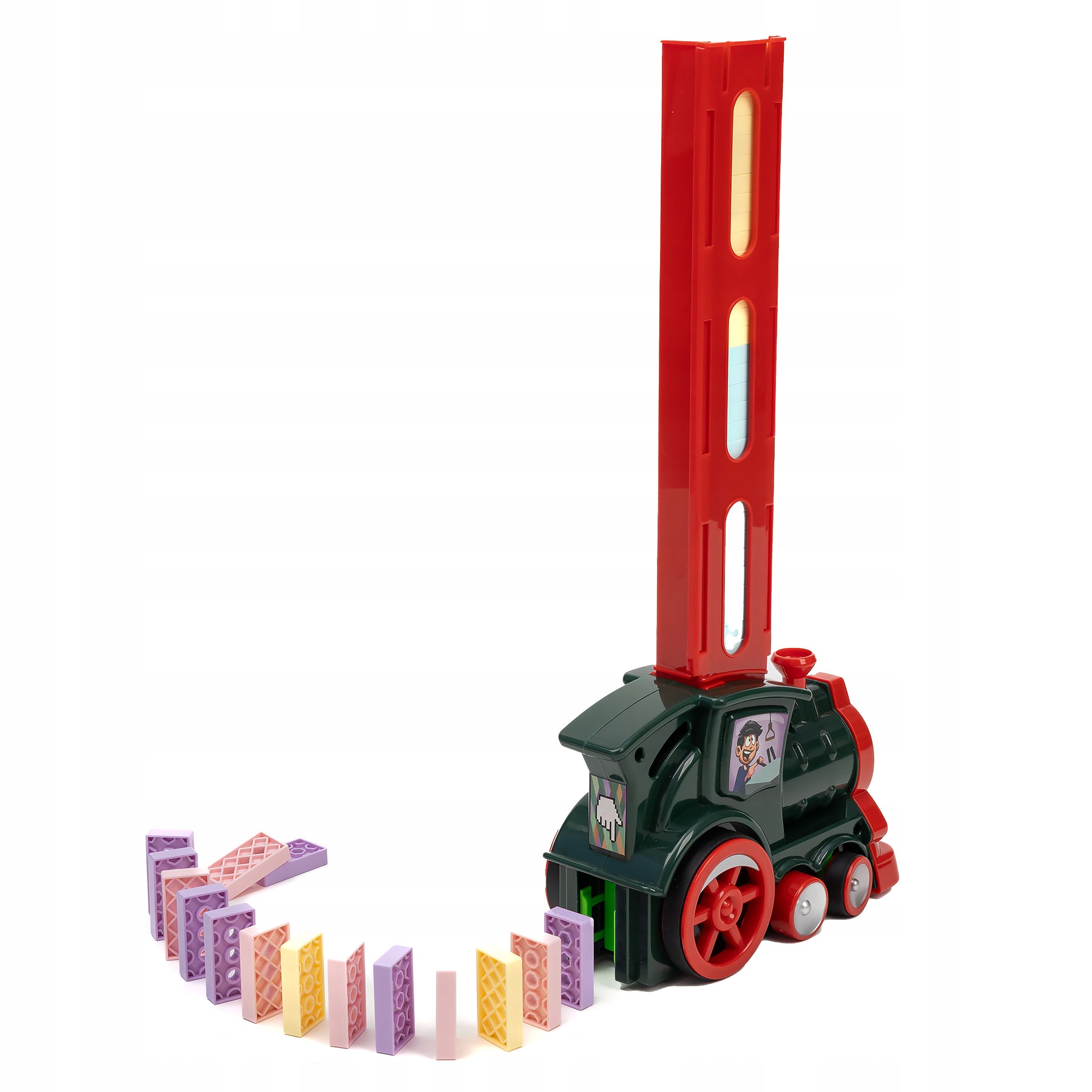Операція дуже проста! Помістіть блоки в підставку, що входить до комплекту, а потім вставте їх у отвір локомотива, спостерігаючи, як він розставляє ряди доміно. Повертаючи димохід, ви можете змінювати напрямок руху потяга, таким чином використовуючи блоки для створення різних форм доміно.