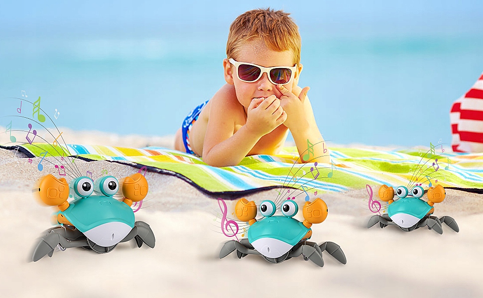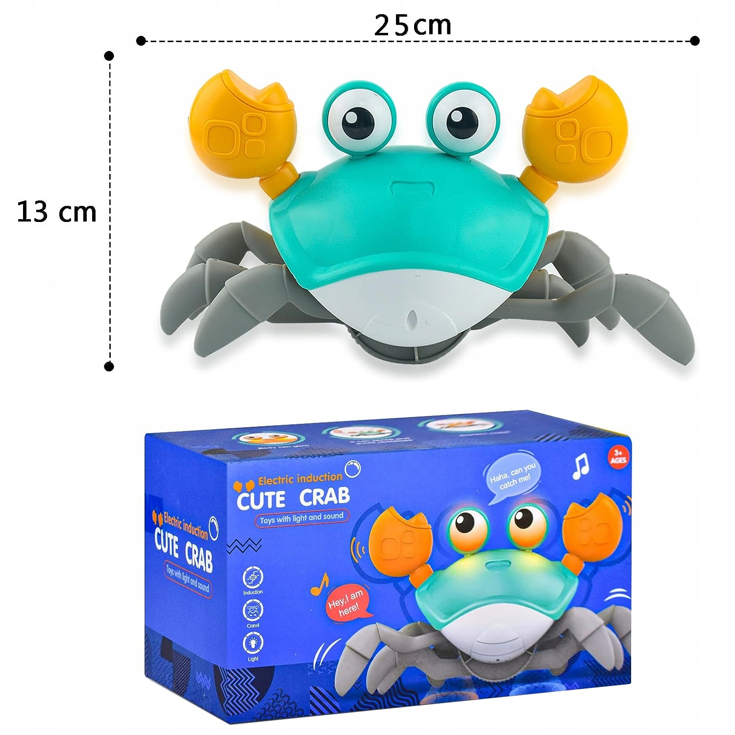 - Ця музична іграшка для дітей має цікаві кольори, а мила форма краба легко привертає увагу дітей і спонукає їх повзати чи ходити з крабом.