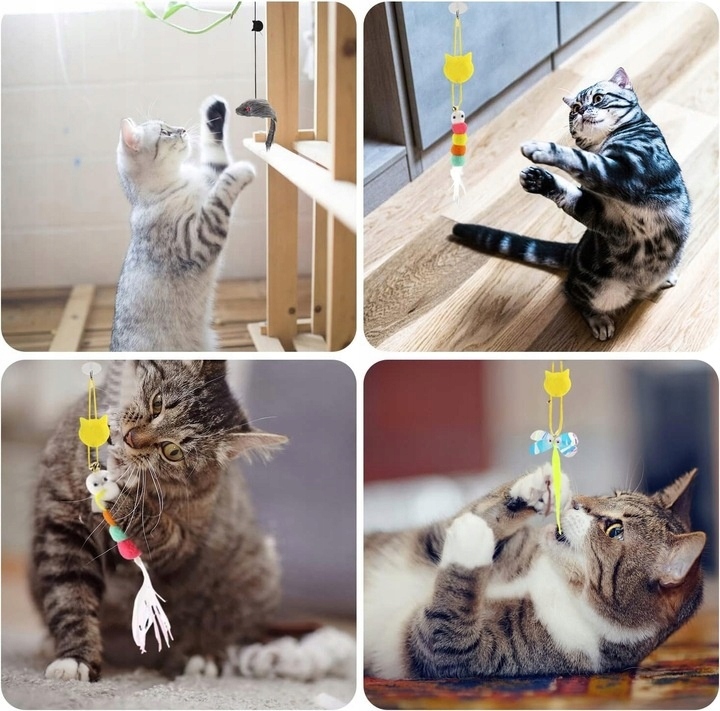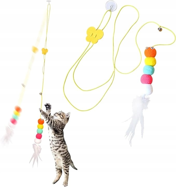 INTERAKTYWNA WISZĄCA WĘDKA DLA PSA KOTA SUPER ZABAWKA POMPONY PIÓRKA