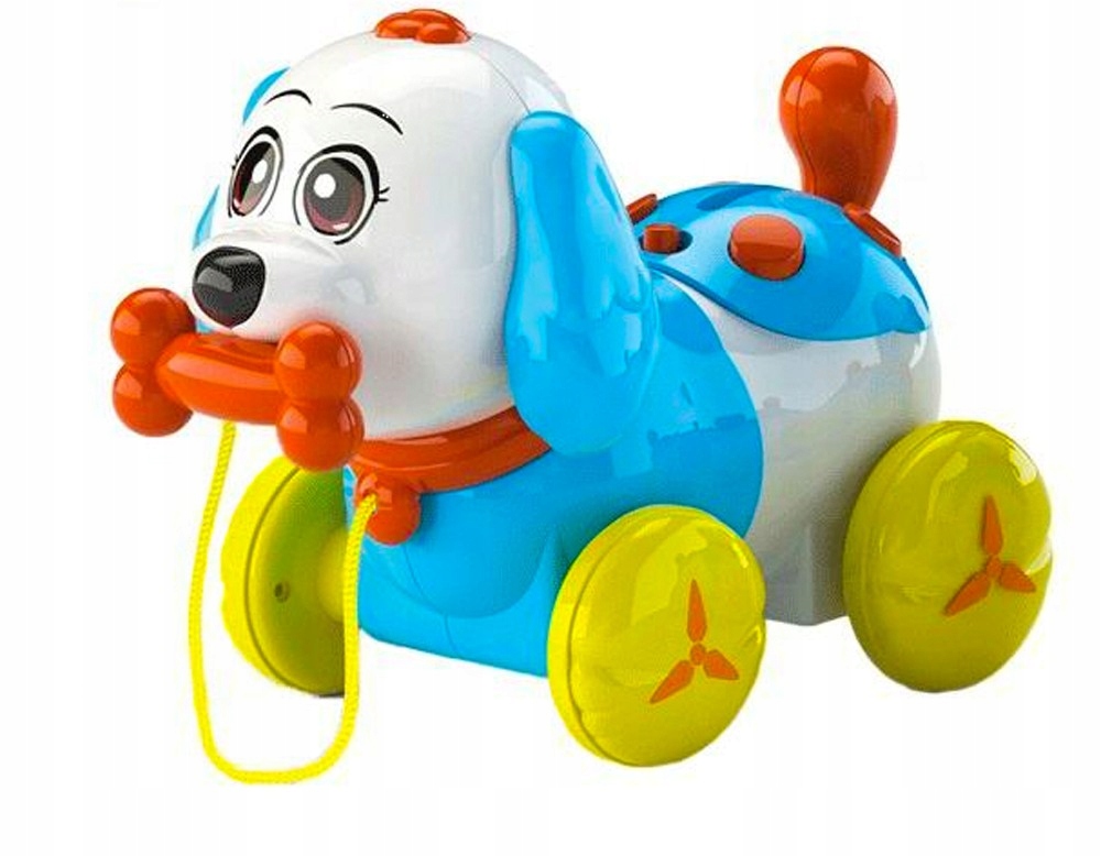 - Інтерактивний елемент: кісточка на шнурку додає додаткової розваги, мотивуючи вашу дитину тягнути іграшку за собою.