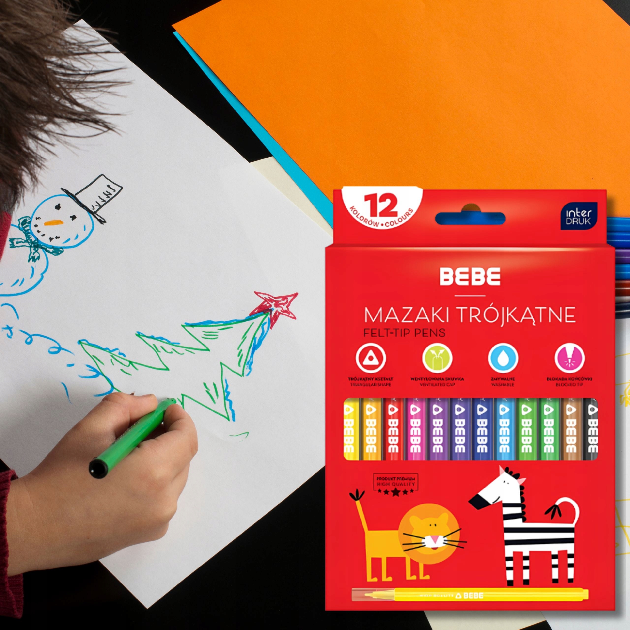 Інтердрук -трикутні маркери 12 Бебе кольорів - безпечна творчість для наймолодших трикутні маркери Interdruk bebe - ідеальний вибір для дітей, які люблять малювати. 12 інтенсивних кольорів, ергономічна форма та точна порада підтримують розробку ручних здібностей. безпечні, нетоксичні та легко миються - вони чудові вдома та в школі.