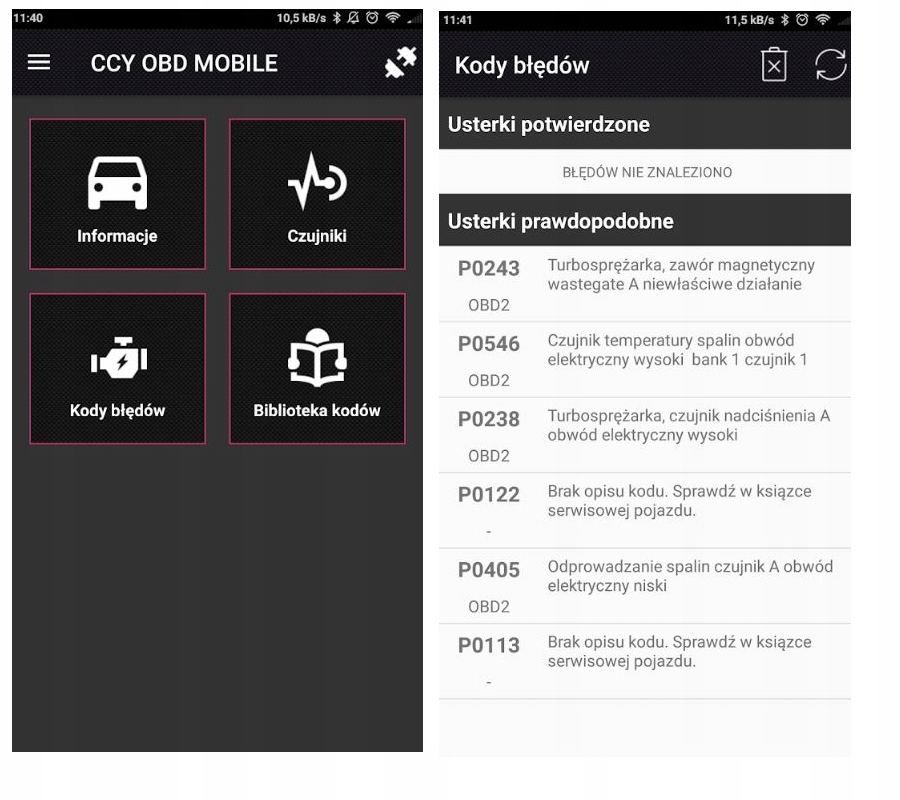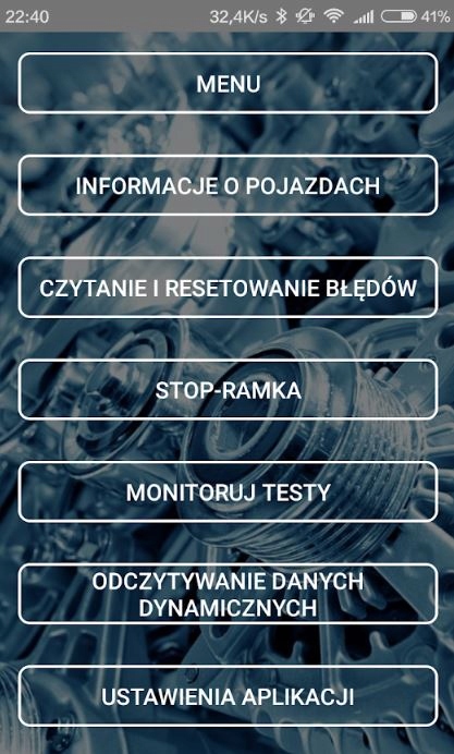 - підтримує безкоштовні програми польською мовою меню (наприклад, CCY Mobile, Car Scanner, Piston, OBD Arny, OBD Harry Scan) і платна SD PROG