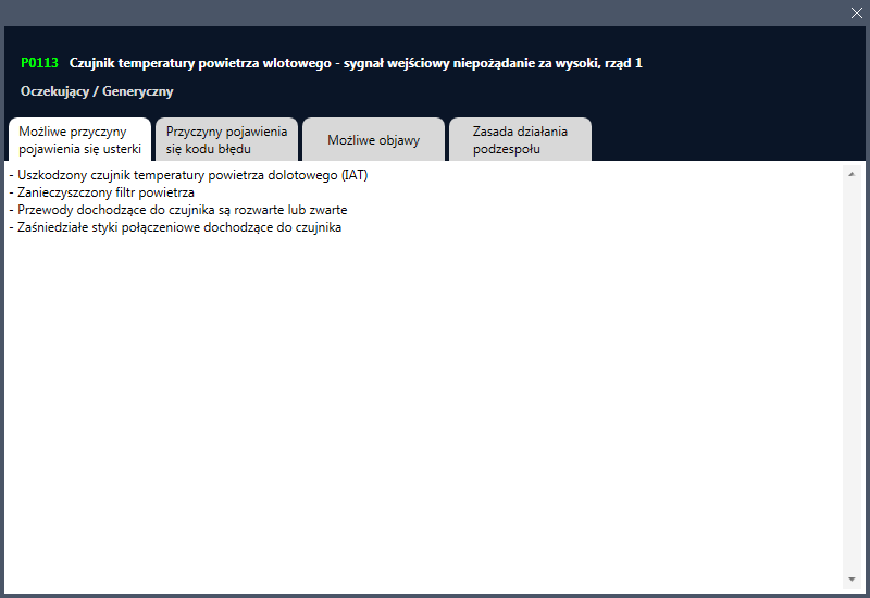 - Зчитування загальних і специфічних кодів помилок виробника