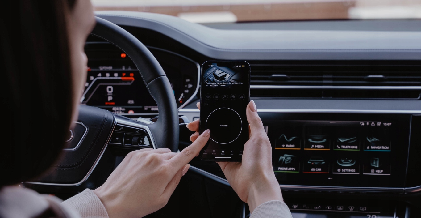 Діагностичний інтерфейс OBD Eleven підключається до роз'єму OBD-II в автомобілі.