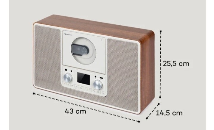 Цей компактний пристрій опанував як аналогові, так і цифрові, надаючи вам доступ до незліченної кількості радіостанцій. Завдяки wi-fi ви маєте доступ до тисяч інтернет-радіостанцій і подкастів з усього світу, знайдеться щось на будь-який музичний смак і інтерес. Ті, хто віддає перевагу класичній радіотехнології, можуть використовувати цифрове радіо для прослуховування регіональних або національних мовників у діапазонах частот DAB+ і FM. Крім того, функція RDS пропонує додатковий контент для супроводу. програми, як-от виконавець, назва, альбом і навіть новини, які миттєво відображаються на 2,4-дюймовому кольоровому TFT-дисплеї. Якщо вам не хочеться користуватися радіо, auna Scala VCD CD radio -IR пропонує широкий спектр інших мультимедійних програм: як мережевий програвач ви можете передавати аудіовміст безпосередньо зі свого комп’ютера або підключатися до свого облікового запису Spotify Connect. Передня частина Програвач компакт-дисків, порт USB, Bluetooth і вхід AUX надають вам широкий спектр додаткових можливостей для прослуховування. Це оптимально реалізовано двома 3-дюймовими вбудованими динаміками 2 x 10 Вт RMS. Завдяки простій і зрозумілій навігації в меню працювати дуже легко. Scala VCD також можна зручно керувати за допомогою пульта дистанційного керування, що входить до комплекту.
