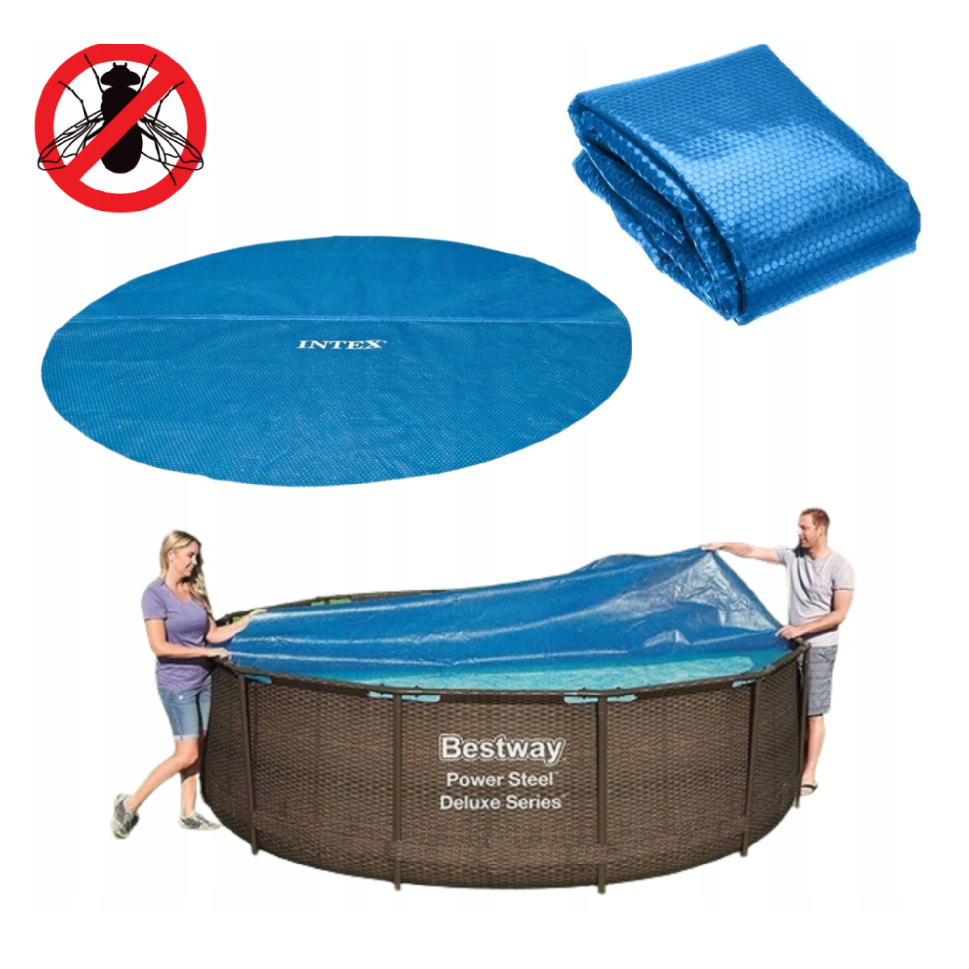 - Протягом дня обкладинка слухає промені сонця всередині басейну, не випускаючи тепло на вулиці.