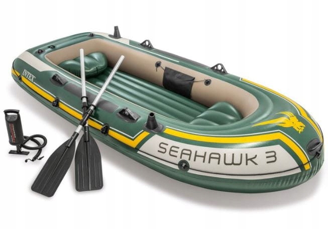 Надувний човен Intex Seahawk 3 розрахований на чотирьох дорослих. Це дозволяє вам насолоджуватися приємним літнім купанням незалежно від того, рибалите ви, відпочиваєте чи катаєтесь на озері. Понтон Seahawk 4 ідеально підходить для туристичних подорожей або риболовлі.