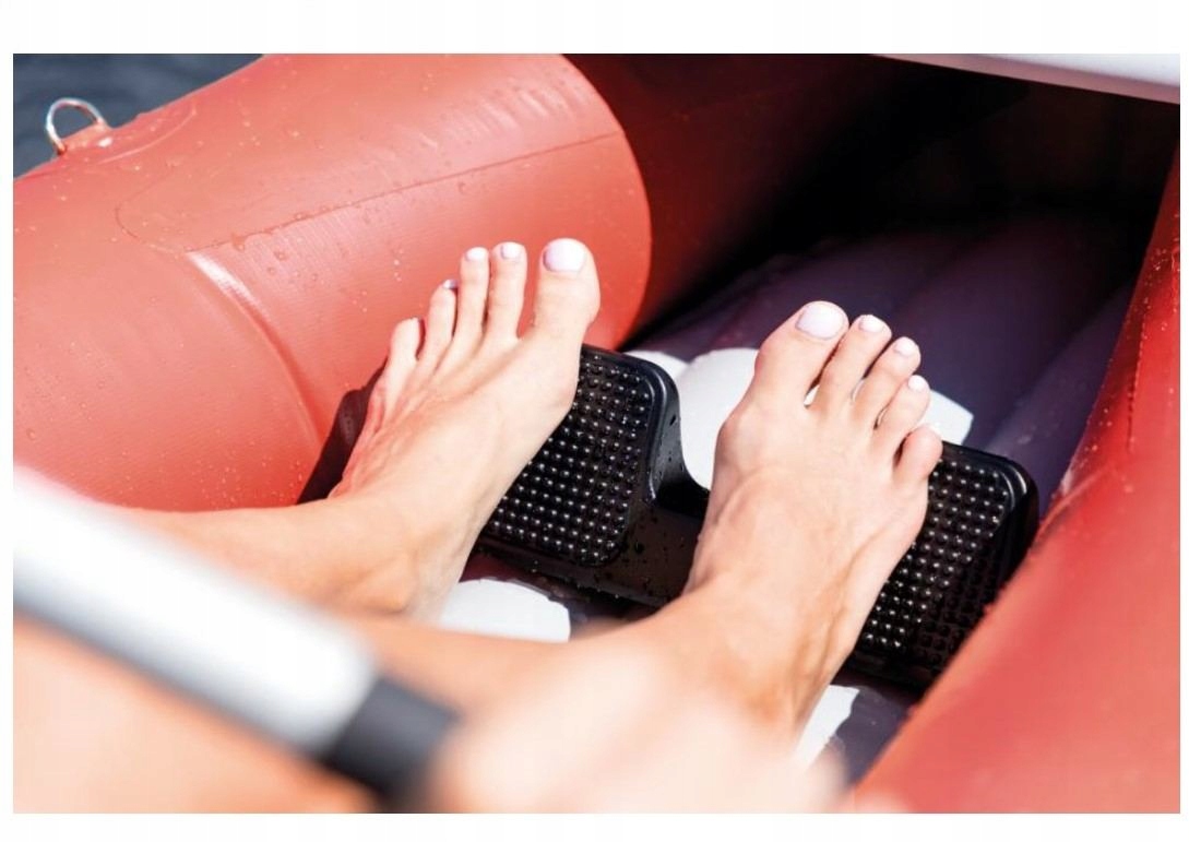Щоб зробити веслування більш ефективним, надувний каяк має підніжки.