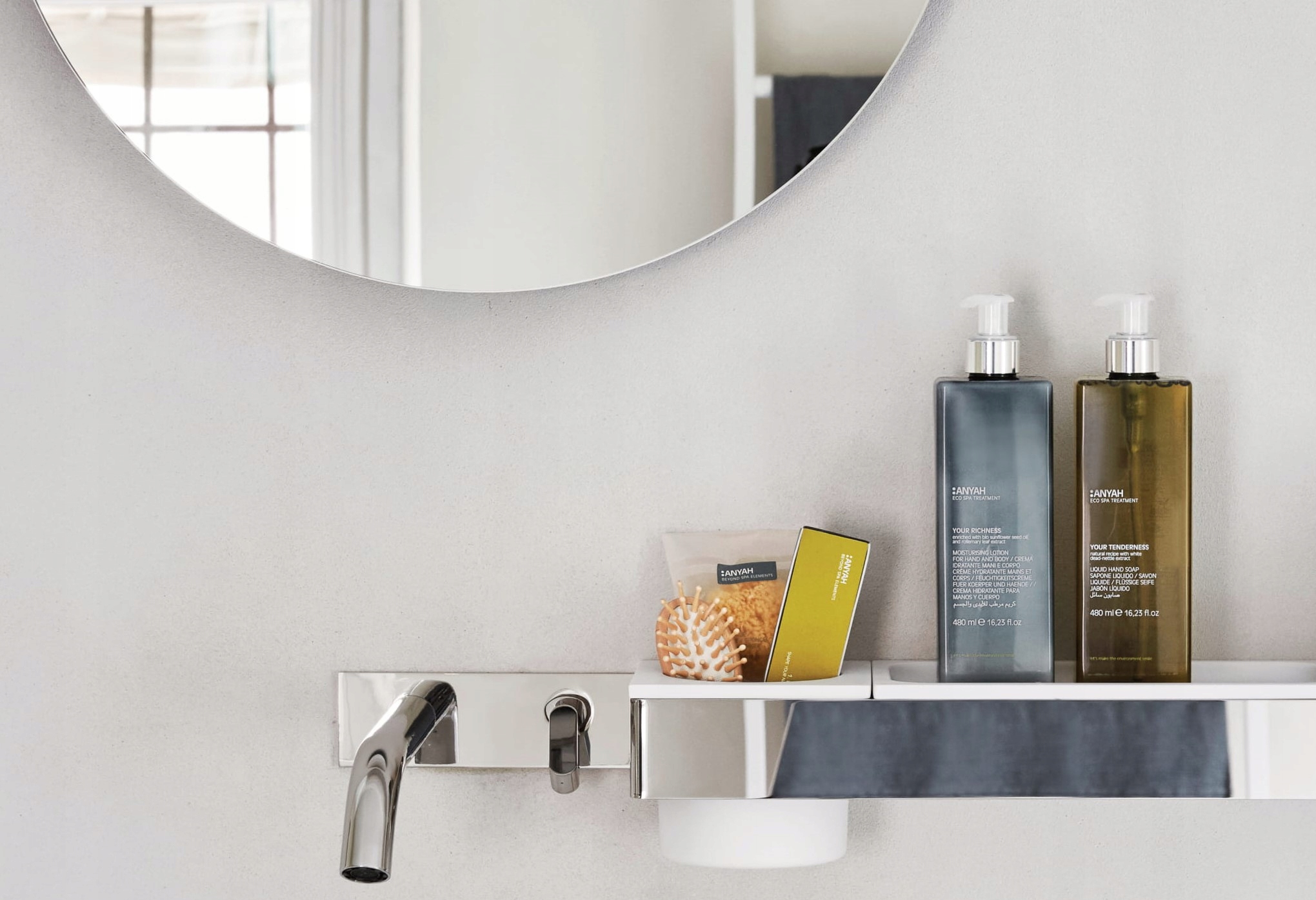 Косметика anthah були створені з використанням сировини зі зниженим впливом на навколишнє середовище, включаючи упаковку, які були вивчені для оцінки їх впливу на навколишнє середовище протягом усього життєвого циклу. Точно, упаковка! Вони спрямовані на зменшення викидів CO2 та зустрічають Eu Ecolabel та Ecocert! Критерії. Крім того, вони відрізняються сучасними та компактними лініями, із синьою або оливковою пляшкою та чіткою, однотонною графікою. Аксесуари були упаковані в сірий відпрацьований папір. У всій колекції були представлені різні, оригінальні та сучасні форми, які збагачують стиль всієї колекції.