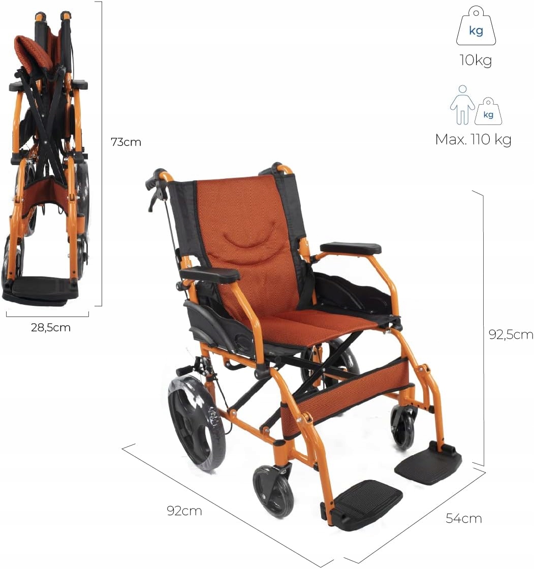 Коляска оснащена складними підніжками, що забезпечує свободу рухів і додатковий комфорт. Ідеально підходить для людей, які потребують підтримки в повсякденному русі.