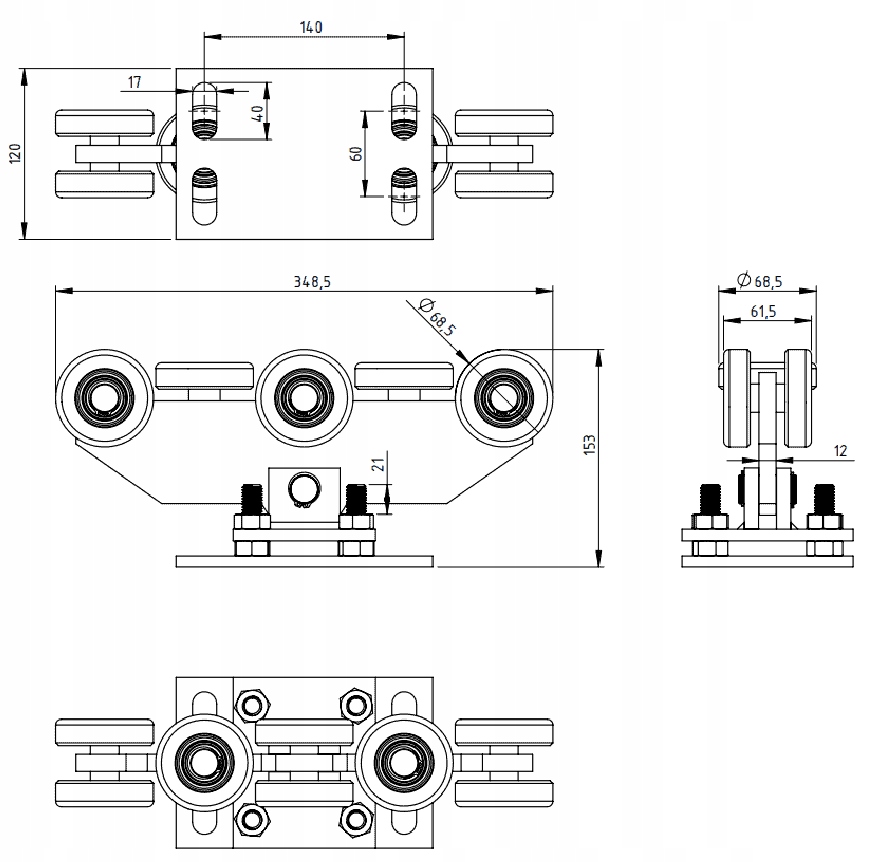 тролейбусна коляска встановить для розсувних воріт 8 роликів 80x80x5 мм до 800 кг поліаміду