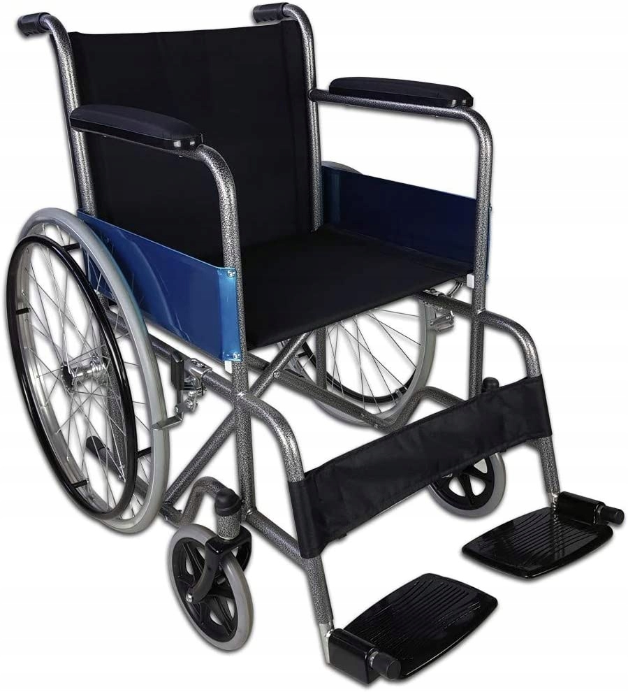 Комфортний: цей складаний інвалідний візок має великі колеса, які разом із підніжками та підлокітниками забезпечують великий комфорт.