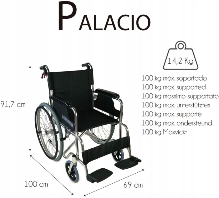 - Практичність: коляска Palacio складається підніжки та фіксовані підлокітники.