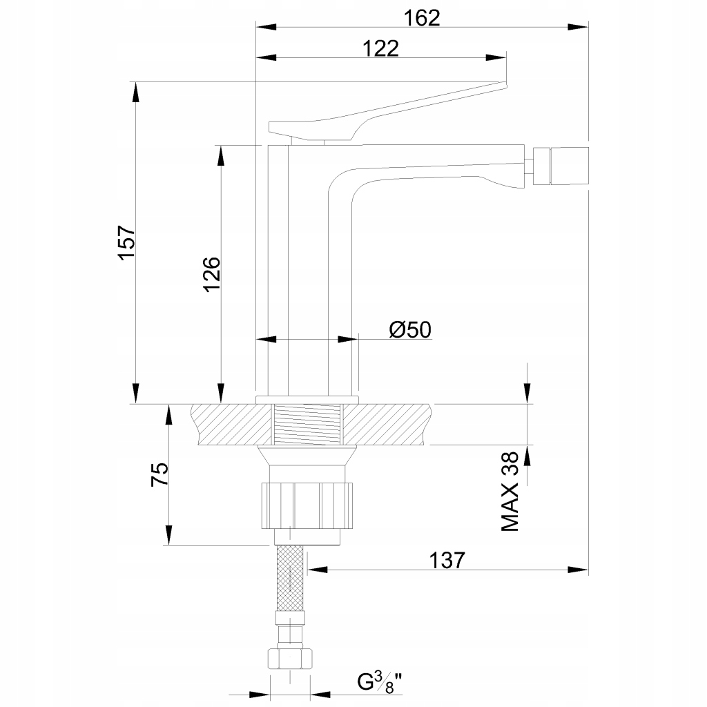 - Діаметр різьби з'єднувального шланга: 3/8"