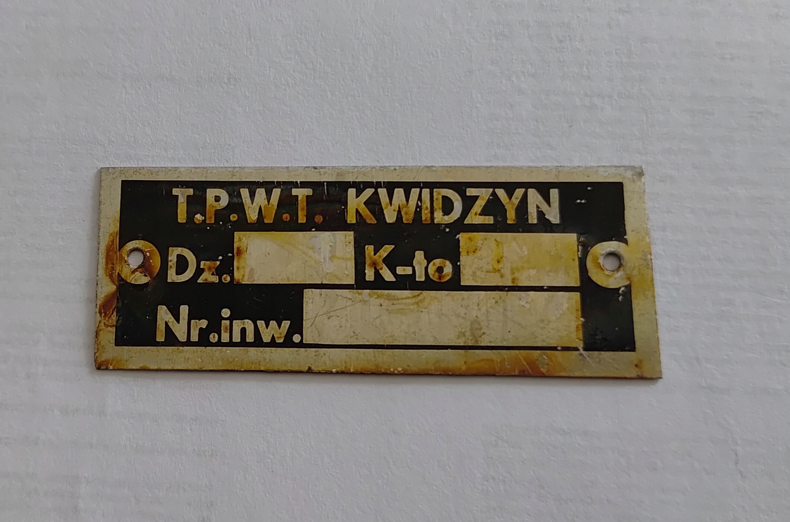 Інвентарна табличка TPWT Kwidzyn 1970-1980-х років
