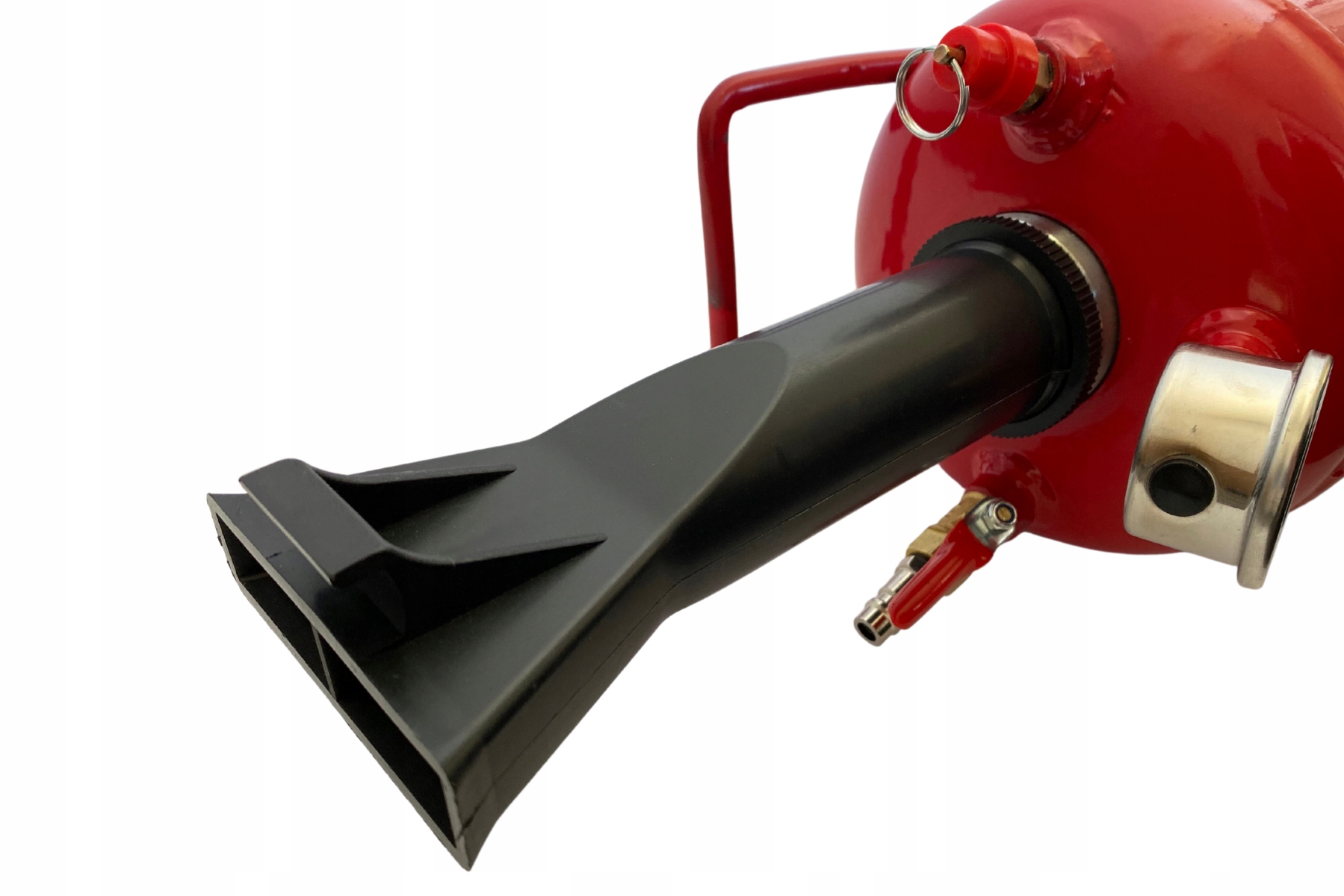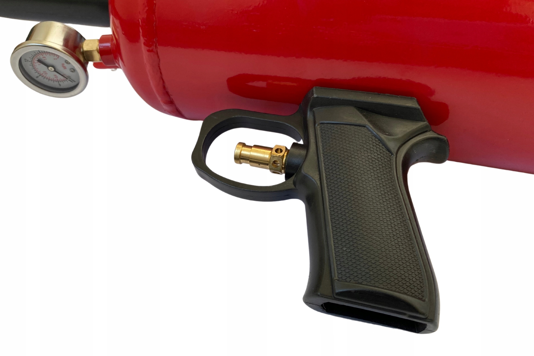 Корпус складається зі зручної ручки, повітряного резервуара, насадки, манометра та кришки курка. . Останнє є додатковим захистом від випадкового використання інфлятора. Обладнання також оснащене клапаном/з’єднанням 1/4". Робочий тиск становить 8 бар.