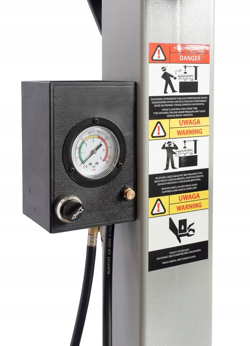 - Колонка з пневматичним нахилом і фіксацією: полегшує роботу та забезпечує зручне й точне центрування колеса на монтажному столі, що забезпечує швидкість і точність роботи.