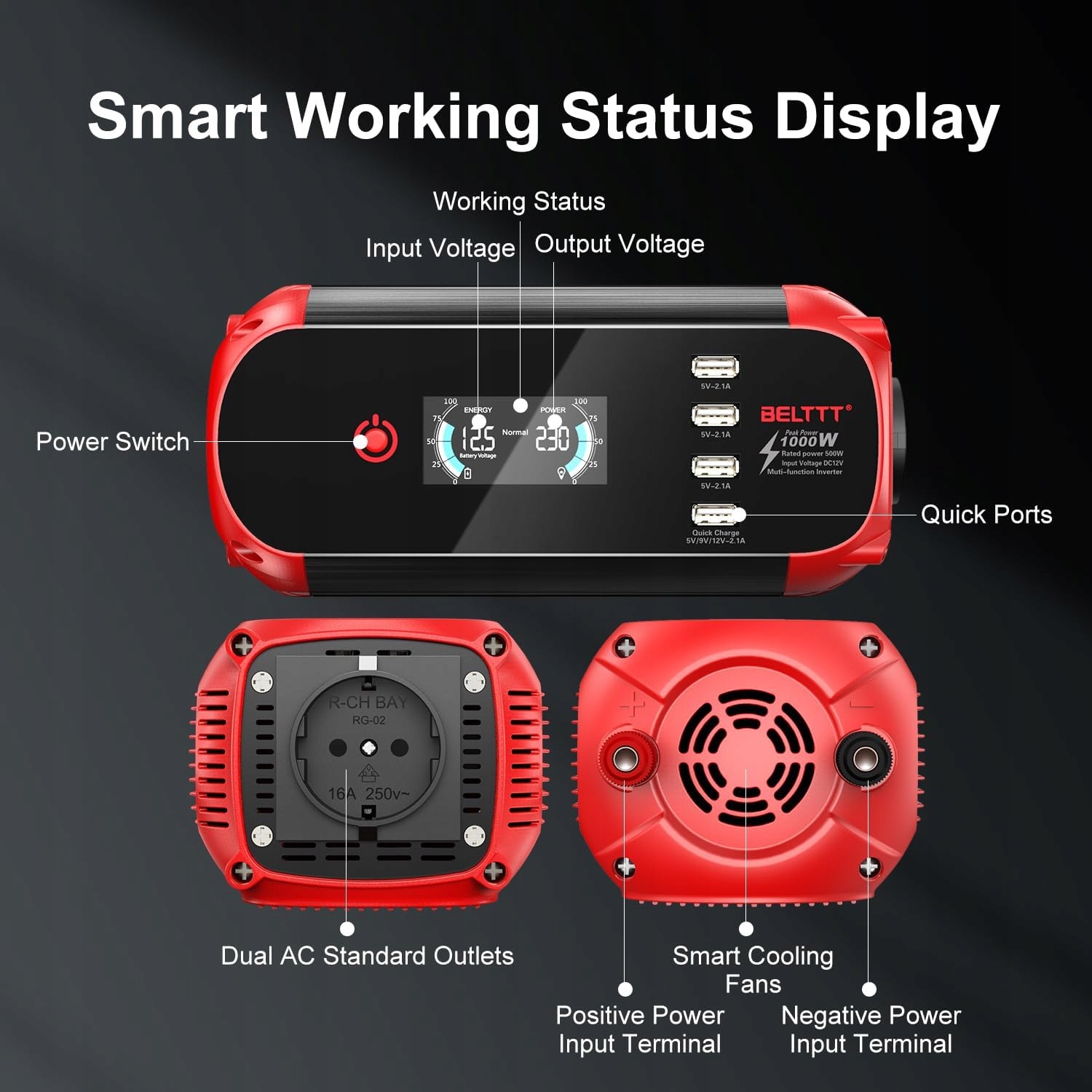 beltt fwerk 500 w/12 v на 230 В перетворювач напруги/конвертер з 4 портами USB/з цифровим дисплеєм з автомобілем