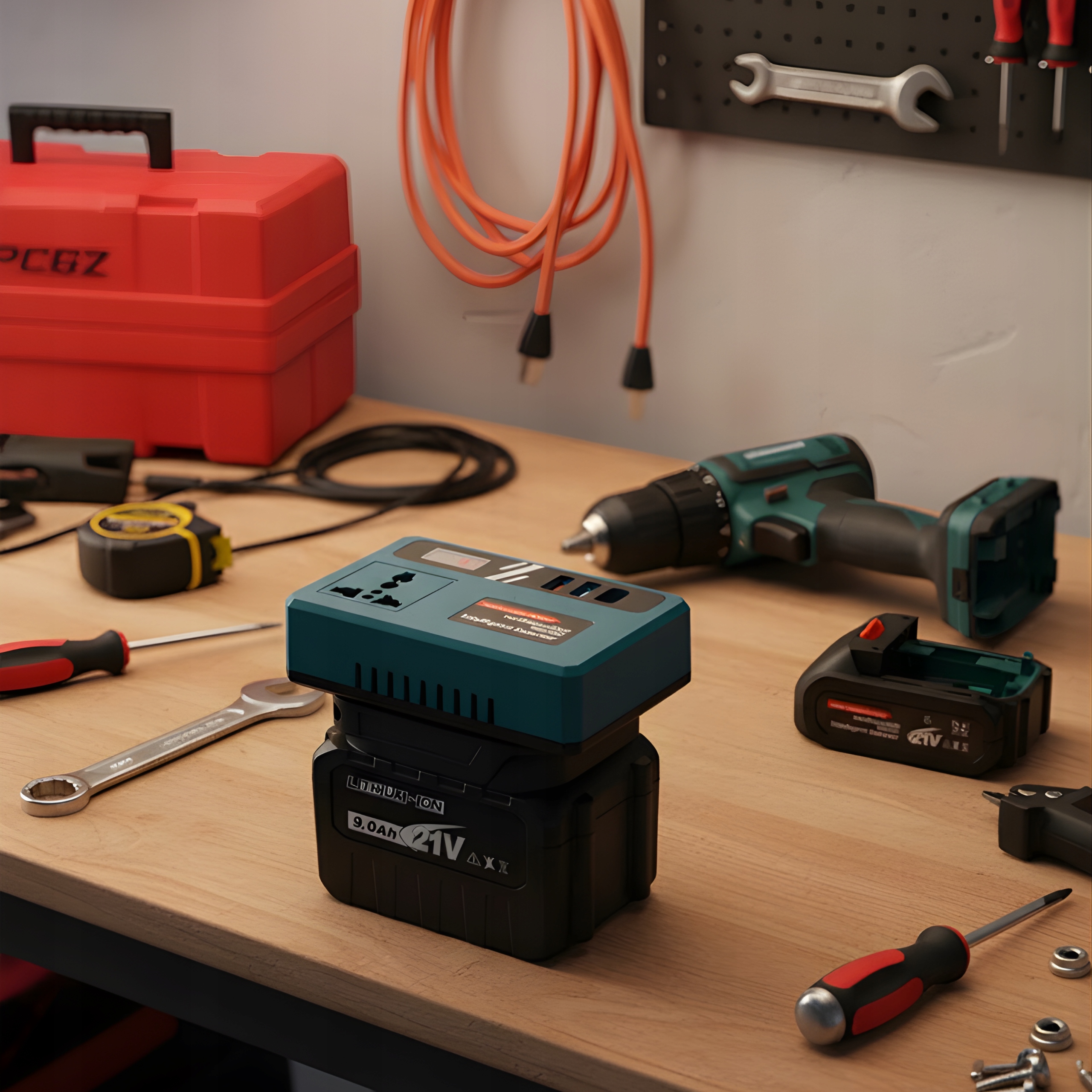 Підключіть пристрій до акумулятора 18-21 В, увімкніть інвертор і через кілька секунд ви будете насолоджуватися такою ж електроенергією, як і від розетки. Ви можете підключити лампу, вентилятор, ноутбук або дорожню кавоварку - будь-де і в будь-який час. Порти USB і USB-C дозволяють швидко заряджати мобільні пристрої без необхідності використання додаткових джерел живлення.