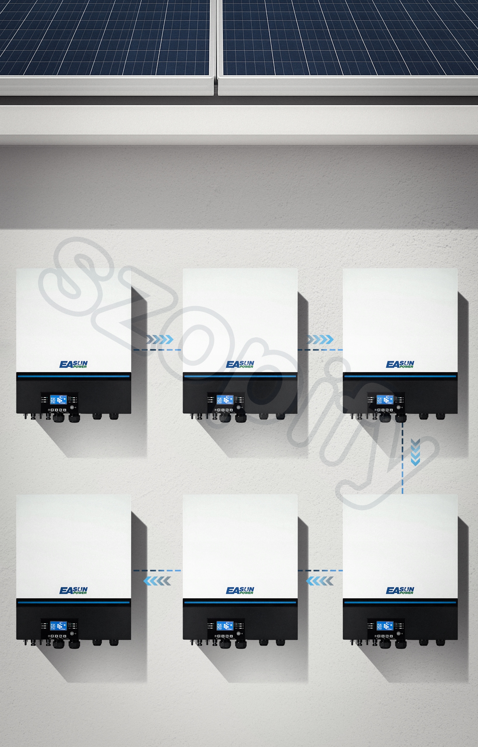 ISolar SMW 11KW був розроблений з урахуванням розширення - він дозволяє підключати до 6 інверторів у паралельну систему, що дає вражаючі можливості конфігурації: