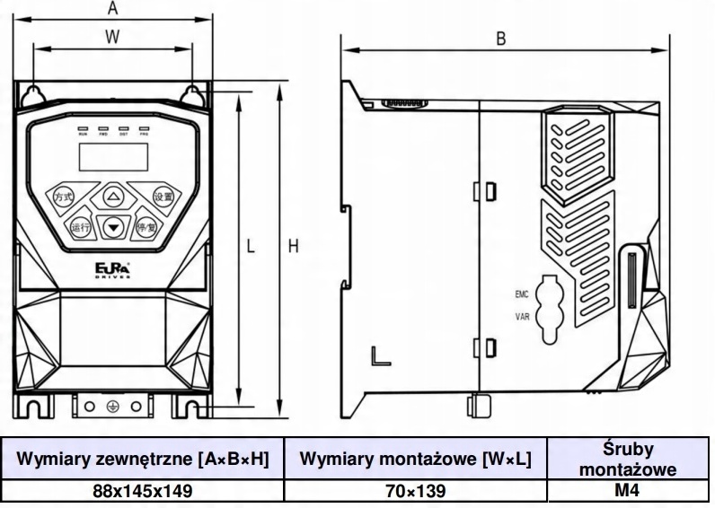 ІНВЕРТОР EURA E600-0007S2 (P: 0,75 кВт, U: 1X230 В, IOUT: 4,5 A)