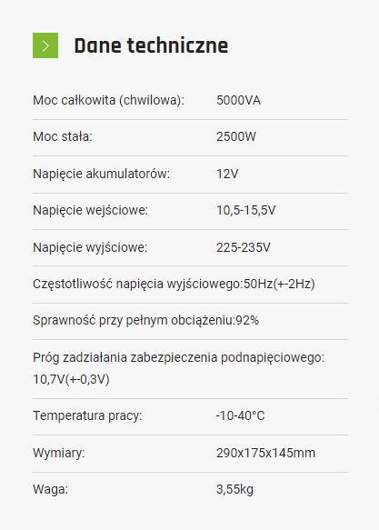 Електронний перетворювач IPS 5000 12V використовується для живлення електричних пристроїв, що вимагають змінної напруги 230V від акумуляторів і автомобільних установок з постійною напругою 12V. Ідеально підходить для транспортних засобів і місць, де неможливе пряме підключення до електромережі.