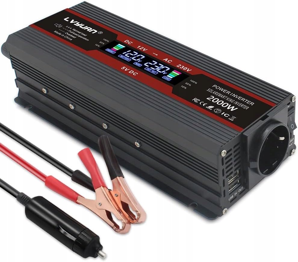Інвертор LVYUAN 12V 230V 800W / 2000W LCD перетворювач напруги
