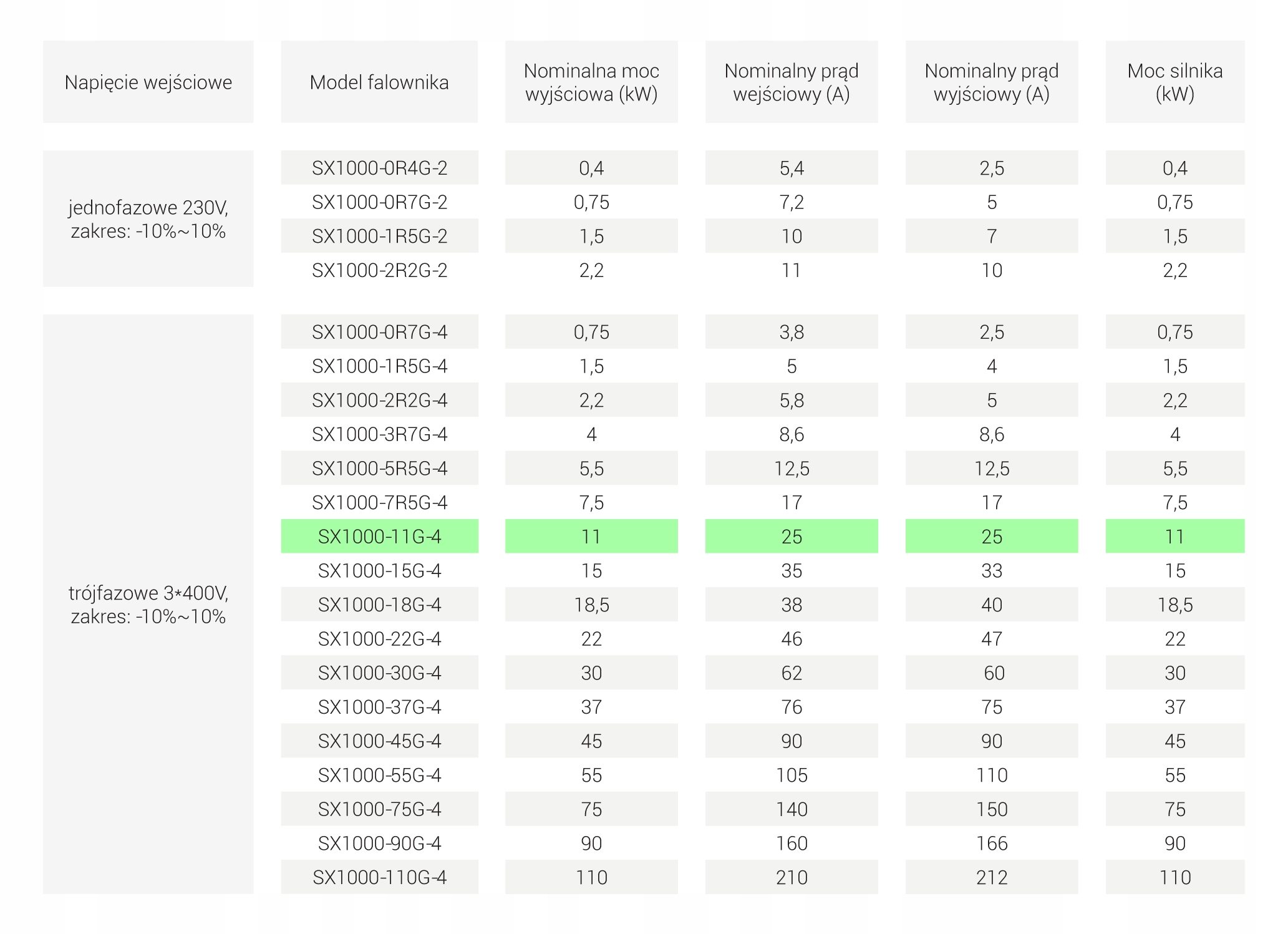 - вхід живлення: 3 x 400 В (3-фазний 400 В)